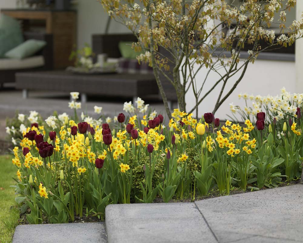 Een goede hovenier maakt het plaatsen van bloembollen onderdeel van het totale beplantingsplan. Daar zit een idee achter; een groei- en bloeischema voor het totale ontwerp van de tuin.