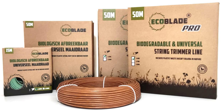 Sinds 2023 is EcoBlade beschikbaar, het eerste volledig biologisch afbreekbaar maaidraad dat geschikt is voor alle soorten grastrimmers en bosmaaiers. Met draaddiktes van 1,6 mm tot 4,0 mm, biedt EcoBlade groenwerkers de mogelijkheid om hun werkzaamheden op een milieuvriendelijke en veilige manier uit te voeren. Hoewel het product nog verbeterpunten heeft, zoals minder stijfheid en verhoogde slijtage bij hoge draaisnelheden, gebruikt EcoBlade de nieuwste technologieën om de slijtvastheid en snijprestaties te optimaliseren.