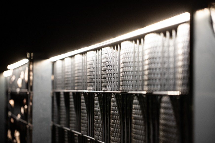 Zo lanceerde Effenso dit jaar de Fensoplate ALU , een vernieuwend type verticale lamellen , opgebouwd uit een polyethyleen kern en afgewerkt met een dunne gecoate Aluminium afwerklaag, die verticaal geweven worden in bestaande gelaste draadpanelen , zowel deze met 3D plooi, alsook voor gebruik bij 2D dubbeldraadpanelen. De lamellen worden bovenaan gezekerd met een Aluminium afdekprofiel voor een perfecte afwerking .