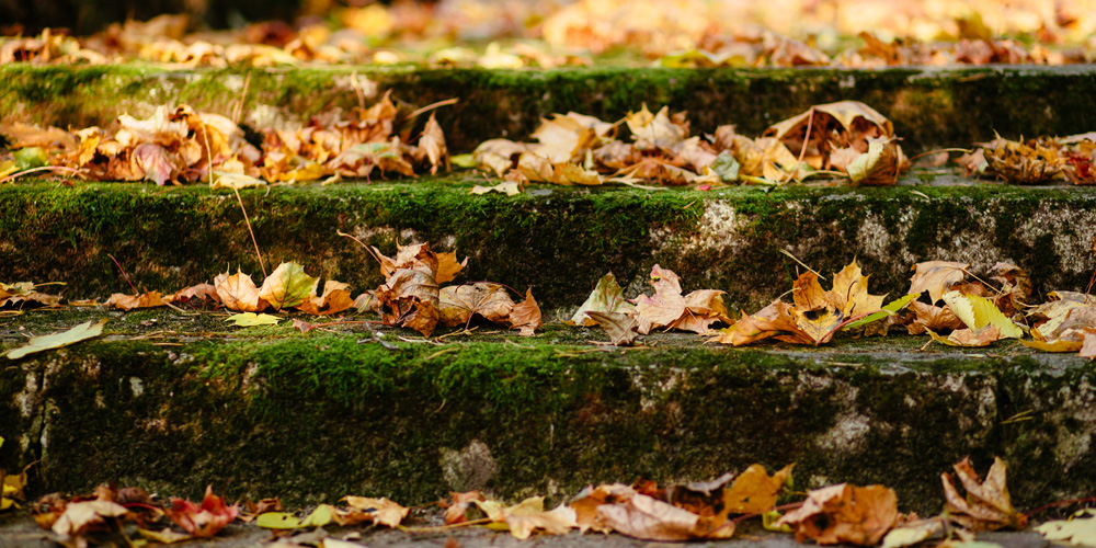 Als derde oorzaak zou je ook optisch vuil kunnen aanwijzen. Denk bijvoorbeeld aan bladeren en zand. Dit ‘onschuldige’ vuil is een ideale bron voor atmosferische aanslag. Het is overigens raadzaam dit te verwijderen met een bladblazer of bezem en zeker niet met een hogedrukspuit. Een hogedrukspuit is een verraderlijk apparaat, aangezien deze met zijn kracht de toplaag van bestrating poreuzer maakt. Dit maakt de tegel ruwer en vatbaarder voor algen, mossen en andersoortig vuil. Goede oplossing op korte termijn, maar slecht voor de ondergrond op de lange termijn.