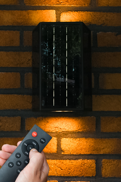 De Iplux® Solar Wandlamp Up Down Milano combineert stijlvol design met moderne technologie en biedt ultiem gemak dankzij de draadloze bediening via de meegeleverde premium afstandsbediening. Zorg ervoor dat de lamp ingeschakeld staat middels de aan/uit knop op de achterkant van de lamp, hierna bent u gereed om alle functies via de afstandsbediening in te stellen. Als u meerdere Milano wandlampen heeft, is het extra handig dat de afstandsbediening universeel is en op elke wandlamp werkt. Hierdoor kunt u gebruik maken van één afstandsbediening om al uw lampen te bedienen. De afstandsbediening heeft drie handige functies die het gebruik van de lampen nog gemakkelijker maken: