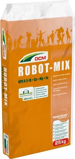 Robotmaaiers verspreiden de maairesten uit over het gazon, wat de bodem verzuurt. Daarom bevat de speciaal ontwikkelde meststof DCM ROBOT-MIX toegevoegde kalk, om de bodem bij iedere voedingsbeurt te ontzuren. Het resultaat? Minder mos en minder vilt.