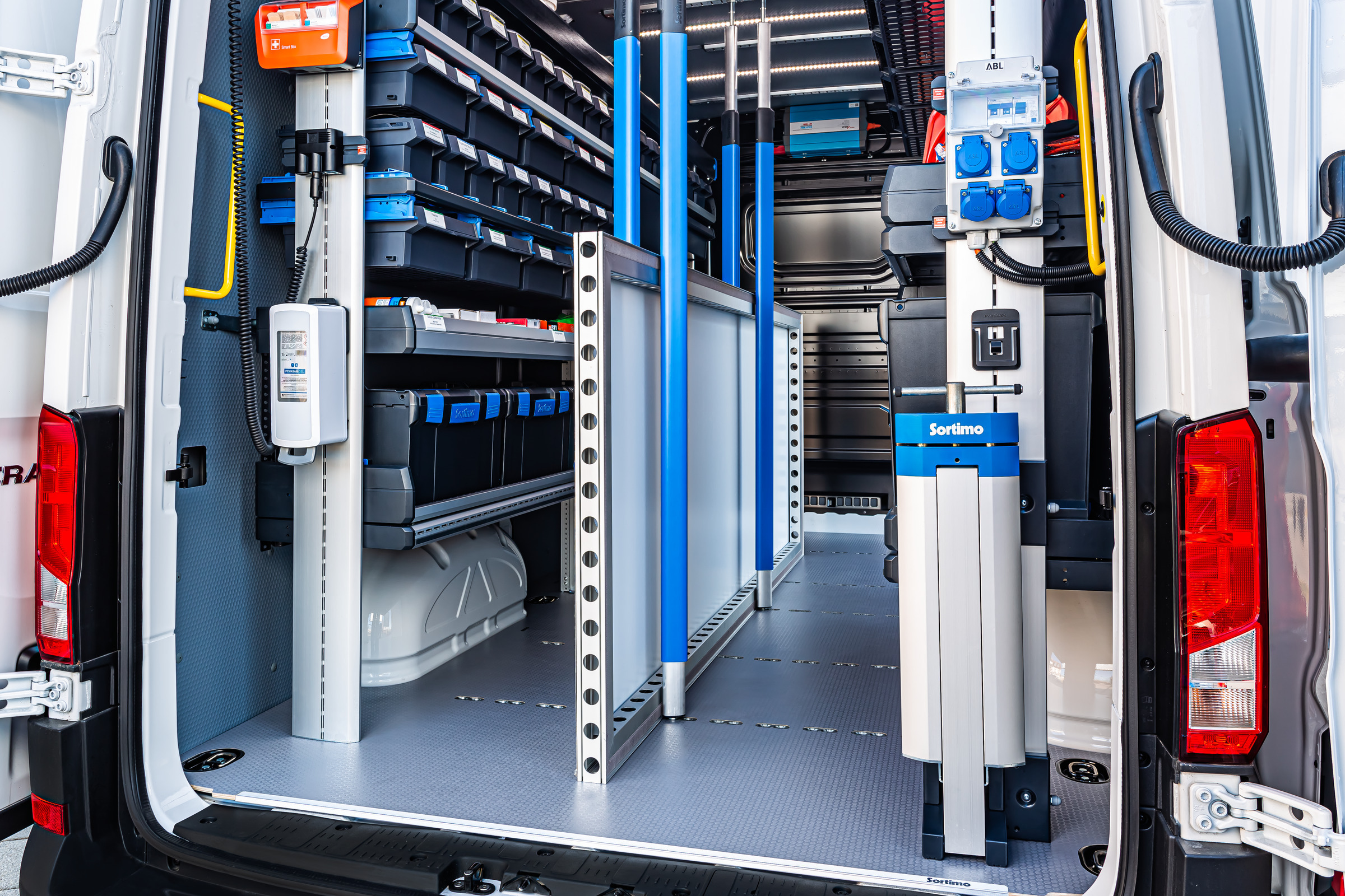 Een ander belangrijk onderdeel van het Sortimo ladingbeveiligingsassortiment zijn de flexibele telescopische spanstangen. Deze stangen bieden een efficiënte oplossing voor het veilig vastzetten van grote ladingen, zowel verticaal als horizontaal. Uniek zijn de geïntegreerde ProClick vastzetpunten, waarmee ProClick gereedschapstassen rechtstreeks aan de spanstangen kunnen worden bevestigd.