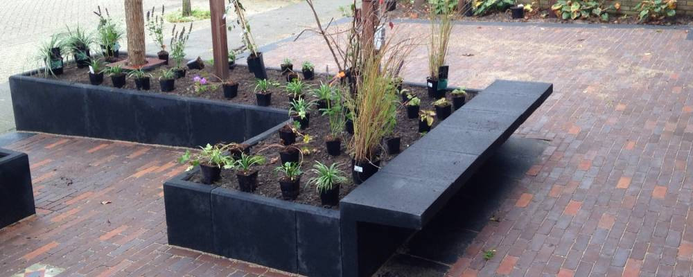 Twee elementen tegen elkaar maken een bak waar je levend groen in kunt doen. Ook hiervoor geldt dat er natuurlijk voor kan worden gekozen dit uit te breiden met meerdere elementen.