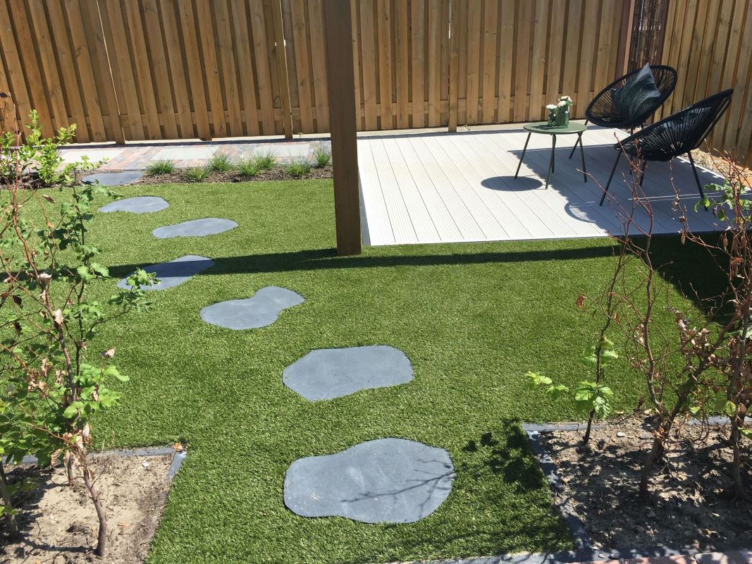 Het plaatsen van een strook grasbetontegels kan ook een aanzienlijk verschil maken in tuinen waar het afvoeren van regenwater een uitdaging is. Deze tegels zijn speciaal ontworpen met openingen of cellen waardoor regenwater de kans krijgt om rechtstreeks in de bodem te zakken. Door de open gaten van de tegels te vullen met beplanting, grind/split of schelpen geef je op een eenvoudige manier een gevarieerde uitstraling aan de tuin.