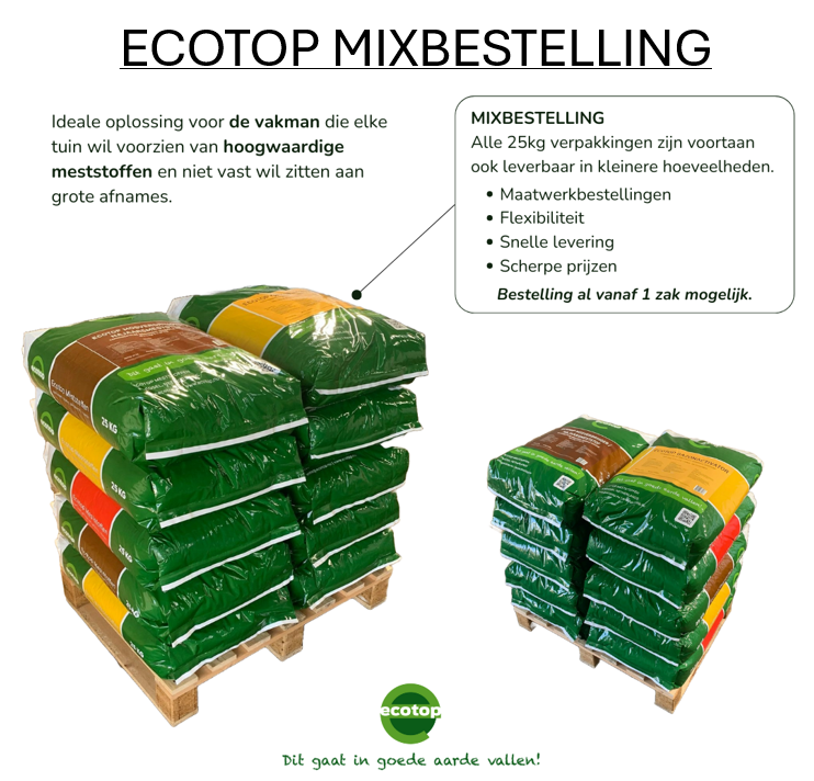 Afname losse zakken, mixbestelling of halve pallet? Neem contact op met +31 6 83 11 77 17 of mail naar info@ecotop.nu voor alle mogelijkheden