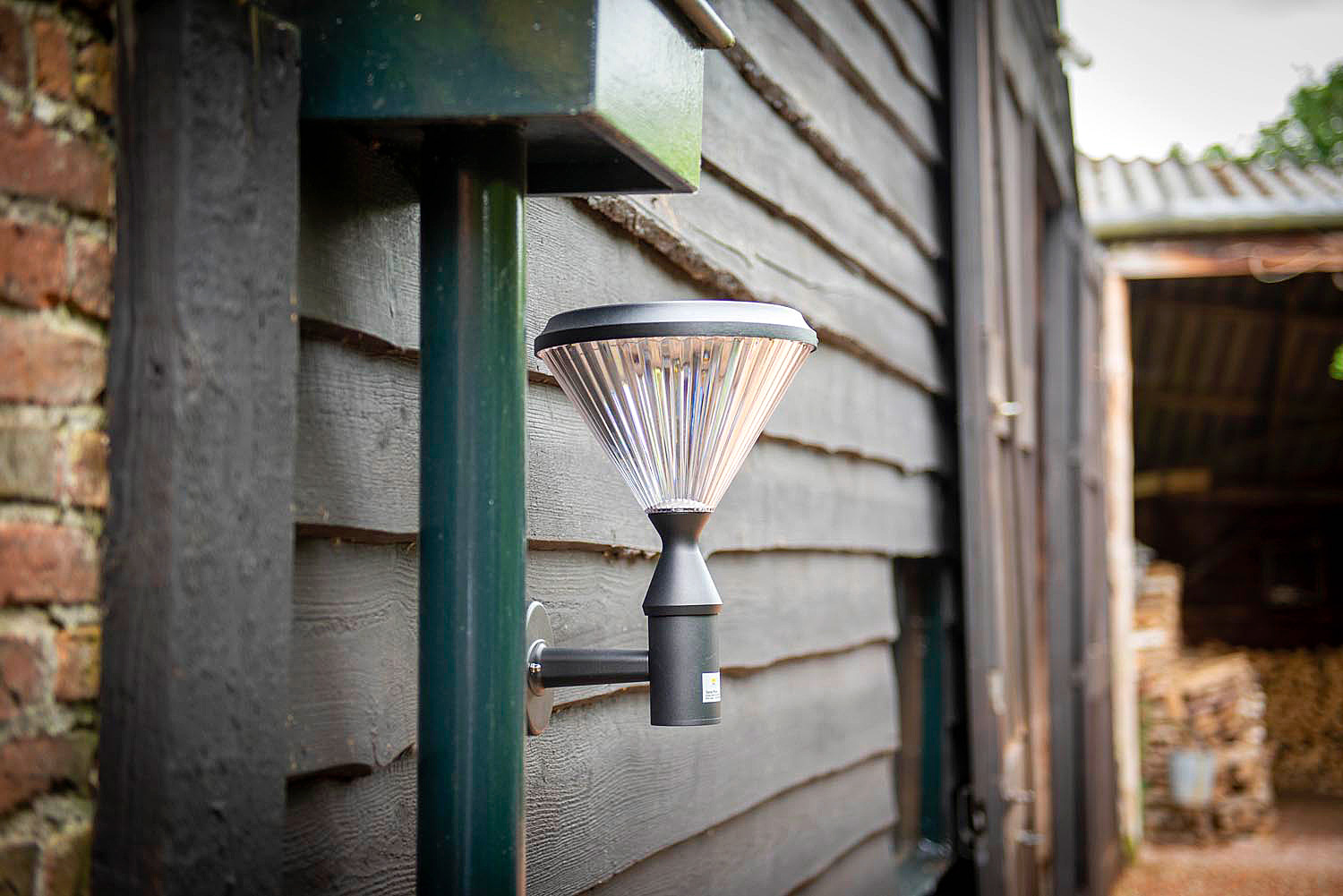 Een parmantige lamp met charme die garant staat voor glamour in uw tuin. Het patroon in de beglazing – ook wel de kristallook genoemd – geeft een speels effect zodat u zich heel even waant in de gezellige straten van Parijs. Met deze lampen creëert u dat gevoel in uw eigen tuin. Draadloze LED buiten wandlamp op zonne-energie. 400 tot 450 lumen warm wit, tot 15 uur licht met een volledig opgeladen accu (lithium ijzer fosfaat accu).