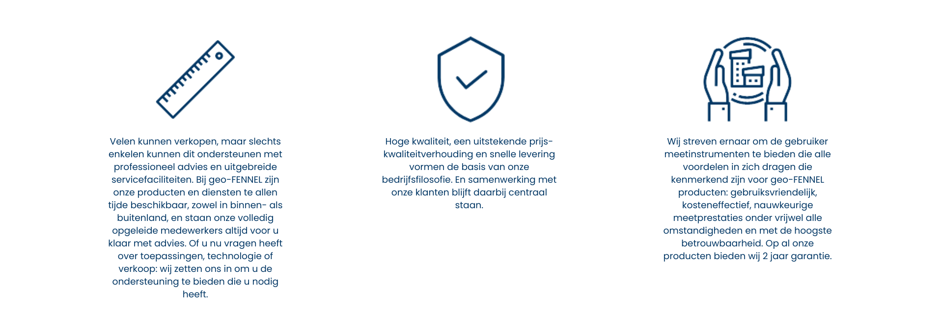 Naast technologie staat bij geo-FENNEL de mens centraal. Ons doel is om onze klanten niet alleen producten, maar complete oplossingen te bieden. Dit omvat uitgebreid advies, deskundige technische ondersteuning en klantgerichte service die ook na aankoop beschikbaar blijft. Opleidingen en productdemonstraties maken net zo goed deel uit van ons serviceaanbod als reparatie- en kalibratiediensten. Ook hoveniers kunnen bij ons terecht voor praktische uitleg en ondersteuning, zodat zij hun meetinstrumenten optimaal kunnen inzetten in het groenproject.