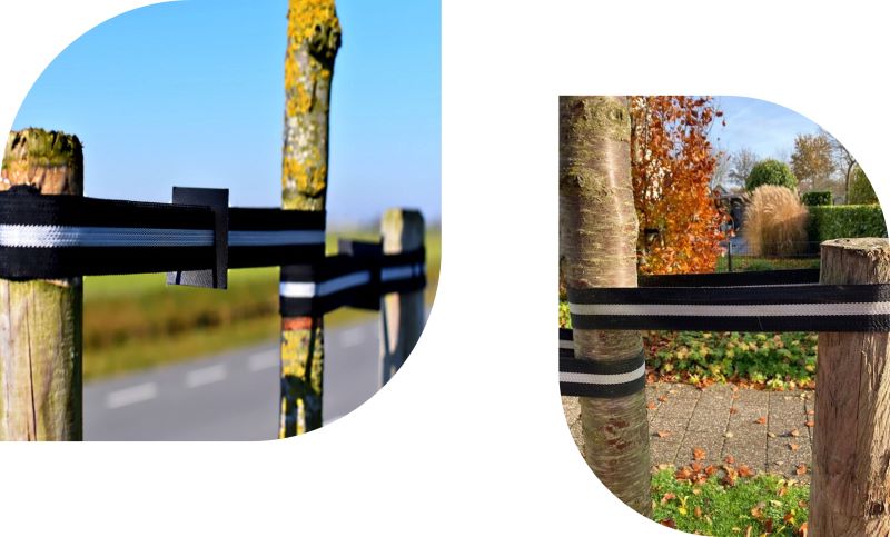 Ons paradepaardje, de BioBoomStrap, is een biologische boomband die zijn kracht en functionaliteit minimaal drie jaar behoudt. Deze boomband is niet alleen sterk en betrouwbaar, maar ook industrieel composteerbaar. Dankzij onze eigen Nederlandse weverij kunnen we korte productieketens garanderen, wat leidt tot minder transport en een lagere ecologische voetafdruk.