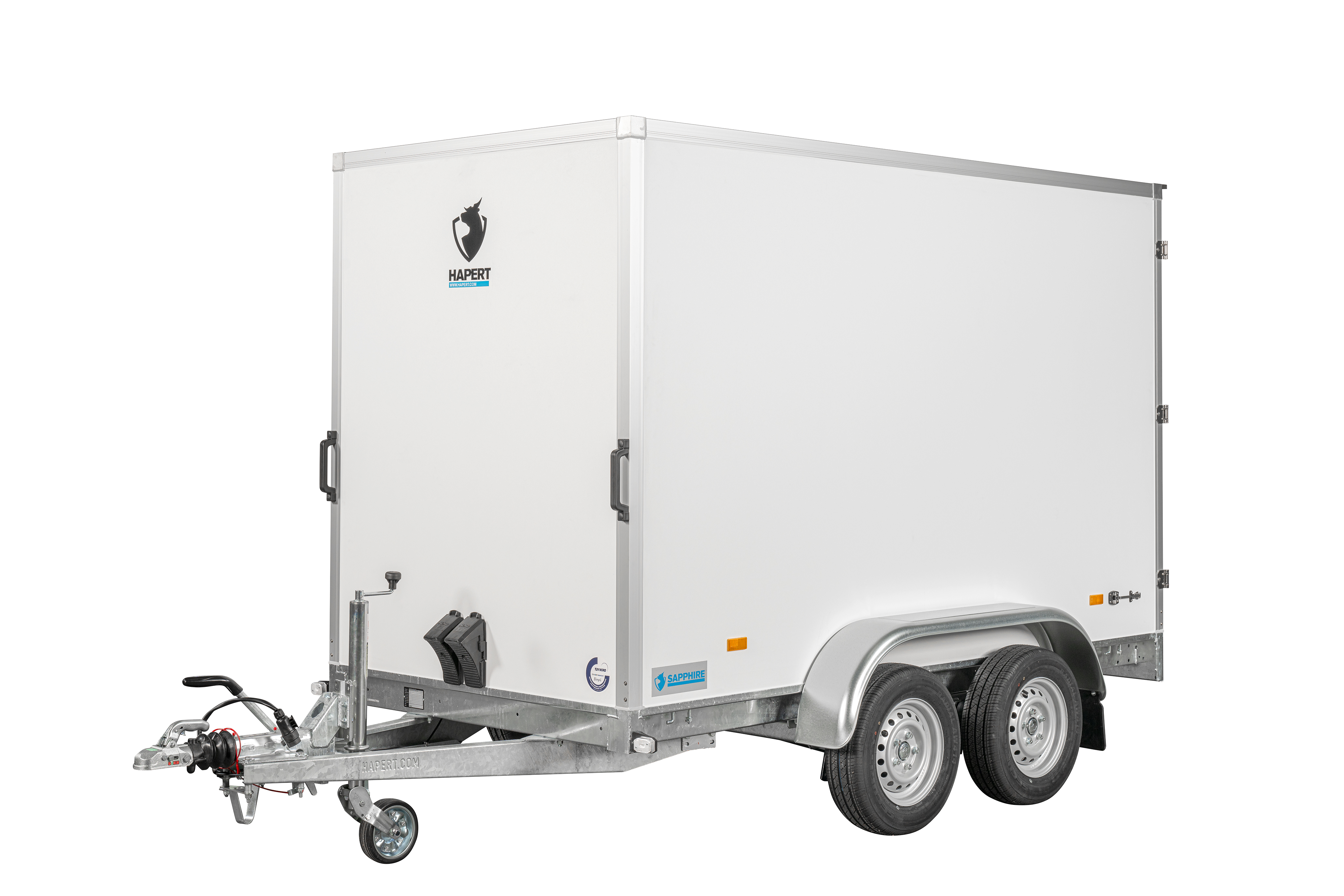 Een gesloten aanhanger is optimaal uitgerust voor het vervoeren van allerlei soorten goederen en materialen. De Sapphire-serie van HAPERT bestaat uit uiteenlopende gesloten aanhangwagens, die volledig kunnen worden aangepast aan uw wensen. Of u nu een dichte enkelasser aanhanger, een gesloten aanhangwagen tandemasser of een koelwagen zoekt; wij bieden altijd een passende transportoplossing tegen de scherpste prijs. Ook een speciale uitvoering van de Sapphire gesloten aanhanger behoort tot de mogelijkheden, zoals een praktische marktwagen of een multifunctionele verkoopwagen. De Hapert Sapphire is verkrijgbaar in de volgende uitvoeringen: