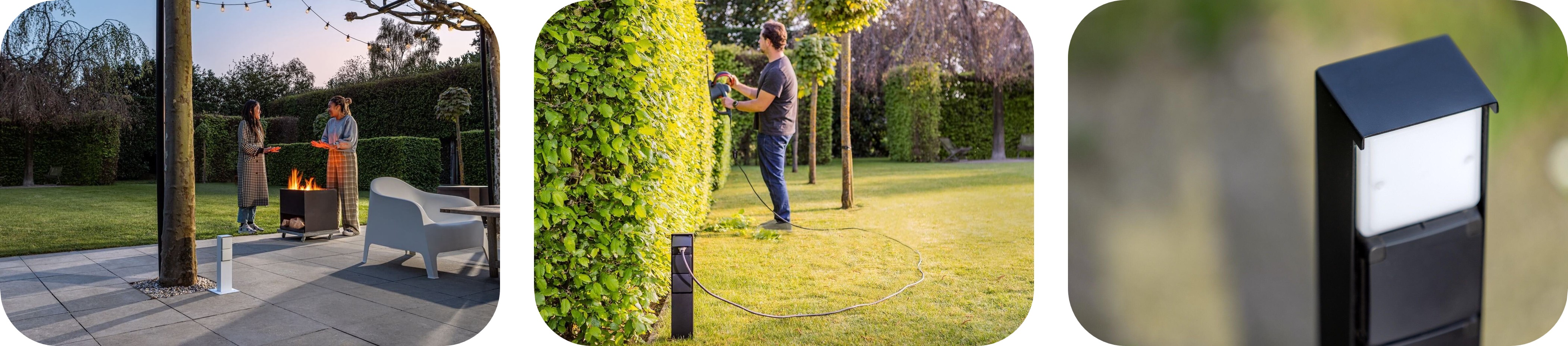Fris je buitenruimte op met de veelzijdige Niko Hydro tuinpaaltjes. De paaltjes zijn verkrijgbaar in zwart, grijs of wit en makkelijk te installeren op zowel harde als zachte ondergrond. Elk paaltje kan maximaal drie Niko Hydro functies bevatten. Met hun IP55-beschermingswaarde en IK07-slagvastheid zijn ze gemaakt om weer en wind te doorstaan. Ze gaan moeiteloos op in je buiteninrichting, verfraaien terrassen, vullen buitenkeukens aan en verlichten opritten.