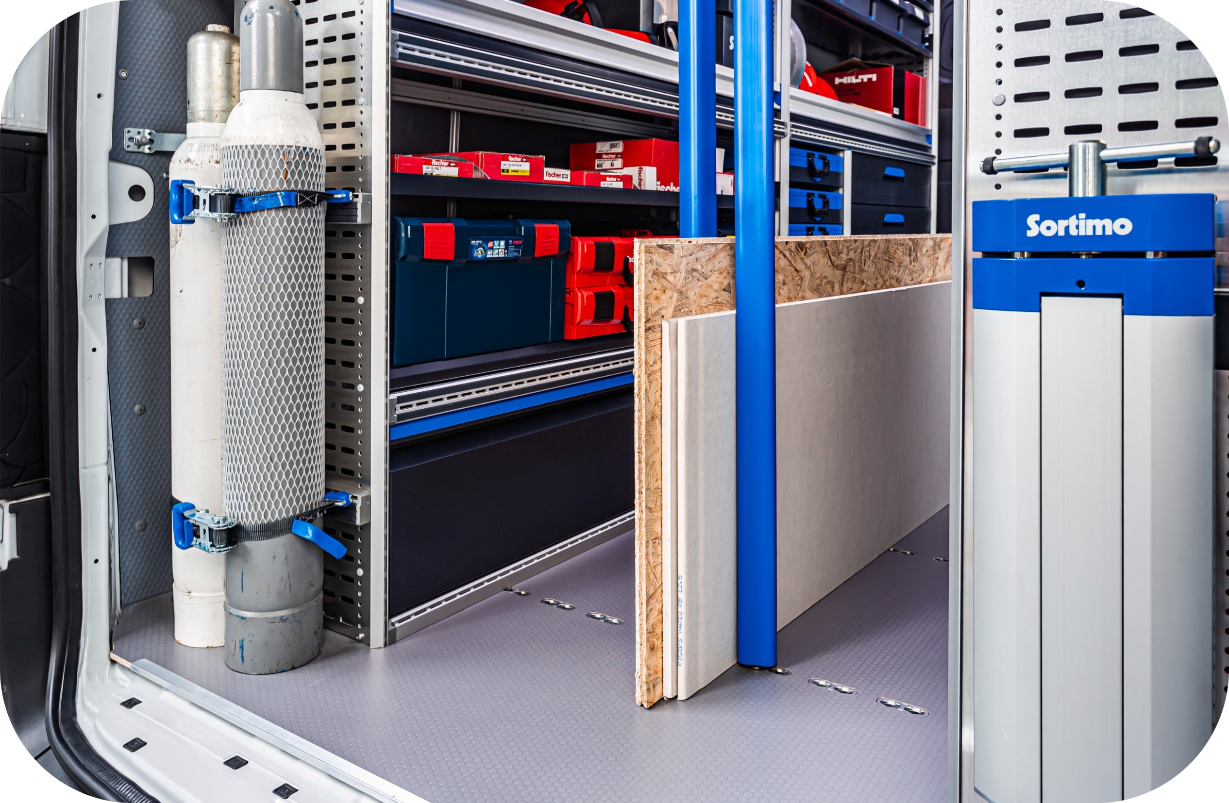 Sortimo biedt bedrijfswageninrichting, ladingbeveiliging en mobiele transportoplossingen. Onze lichte en op maat gemaakte oplossingen zorgen voor maximale ruimte in je bedrijfswagen. Zo blijft gereedschap en materiaal altijd netjes geordend en makkelijk te vinden.